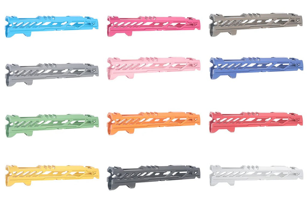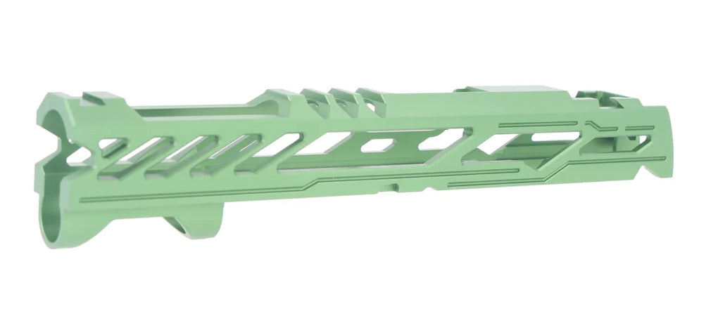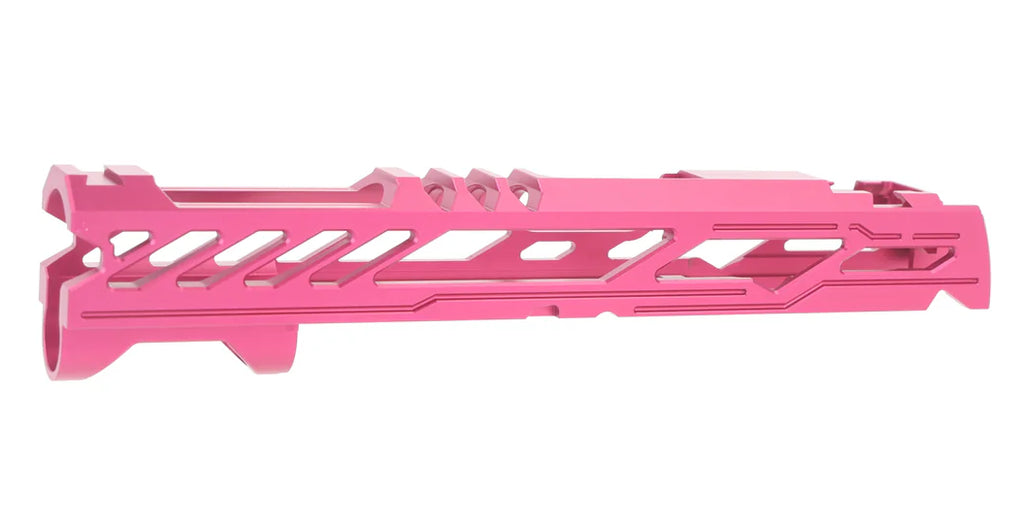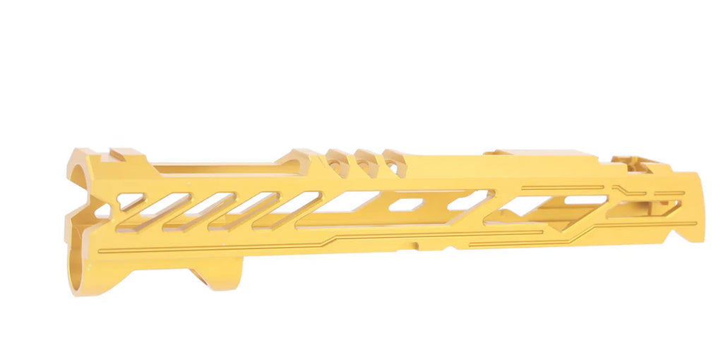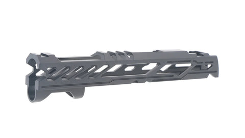 Dr. Black Type "Y" Aluminium 5.1 Slide for Hi Capa The Dr. Black Type Y TM 5.1 Aluminium Slide is designed to deliver superior performance and style for your Tokyo Marui Hi-Capa 5.1 platform. Precision-engineered from lightweight, durable aluminum, this slide enhances cycling efficiency and reduces overall weight for improved handling. Featuring a sleek, aggressive Type Y design, it offers a modern aesthetic that stands out on the field or at the range. Upgrade your Hi-Capa's performance and appearance with the Dr. Black Type Y TM 5.1 Aluminum Slide. Its lightweight design improves responsiveness, while its stylish look ensures your pistol makes a bold statement. Perfect for competitive shooters and Gelsoft enthusiasts alike.